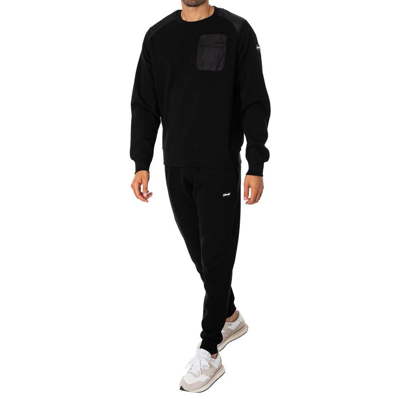 Sweat Schott COL ROND EMPIECEMENT – Réf. REDSILVERE-BLACK.